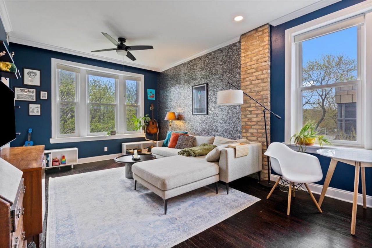 Looking for a unicorn? You've found it! This duplex up penthouse is loaded with charm and drenched in natural light--and it's an incredible value for a unit of this size in Bucktown. Main level features black hardwood floors, exposed brick, 10-foot ceilings, and original millwork, providing loads of character the moment you step inside. Granite countertops, subway tile, and stainless steel appliances make the sunny kitchen a delight to work in, and a spacious adjoining dining room screams to host your friends and family. 2 bedrooms, a hall bath, and a laundry closet round out the main level. Up the charming spiral staircase you'll find your primary suite oasis, complete with original pine floors, a large additional living space, and two skylights. (There's a rear stairwell too if you're not the spiral staircase type). Stylish new lighting, dual vanities, and a subway tile shower make for an uber-cool primary bath, and there are two spacious walk-in closets upstairs. An additional storage area in the basement can handle any overflow. 2 blocks to 90/94, and an easy walk to Holstein Park, Allez Cafe, Chef's Special, and everything Bucktown has to offer. Do not miss this one!